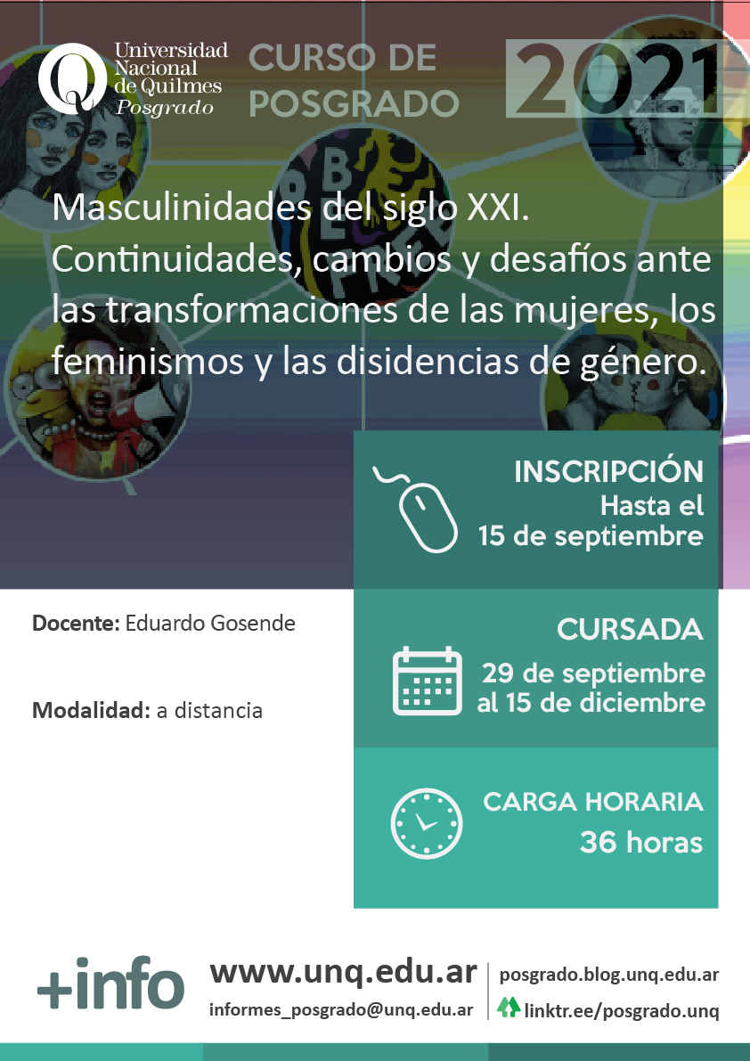 El Diploma de Posgrado en Géneros, Feminismos y Derechos Humanos, abre inscripciones hasta el 15 de septiembre a su curso: “Masculinidades del siglo XXI. Continuidades, cambios y desafíos ante las transformaciones de las mujeres, los feminismos y las disidencias de género”