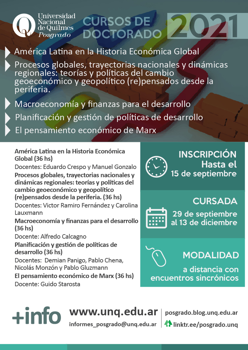 El Doctorado en Desarrollo Económico abre inscripciones hasta el 15 de septiembre a los siguientes cursos: