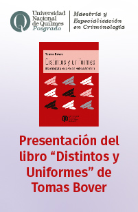 El día Jueves 15 de julio de 16 a 18 hs. presentaremos el libro “Distintos y Uniformes” (Editorial UNQ) de Tomas Bover, docente y autoridad de la Maestría y la Especialización en Criminología. El autor analiza la heterogénea producción de policías como agentes sociales en la Policía Federal Argentina. Las policías suelen ser pensadas como corporaciones o como bloques monolíticos, este libro postula la necesidad de una mirada más próxima que permita conocer relieves, matices y diferencias en el abordaje de estas instituciones.